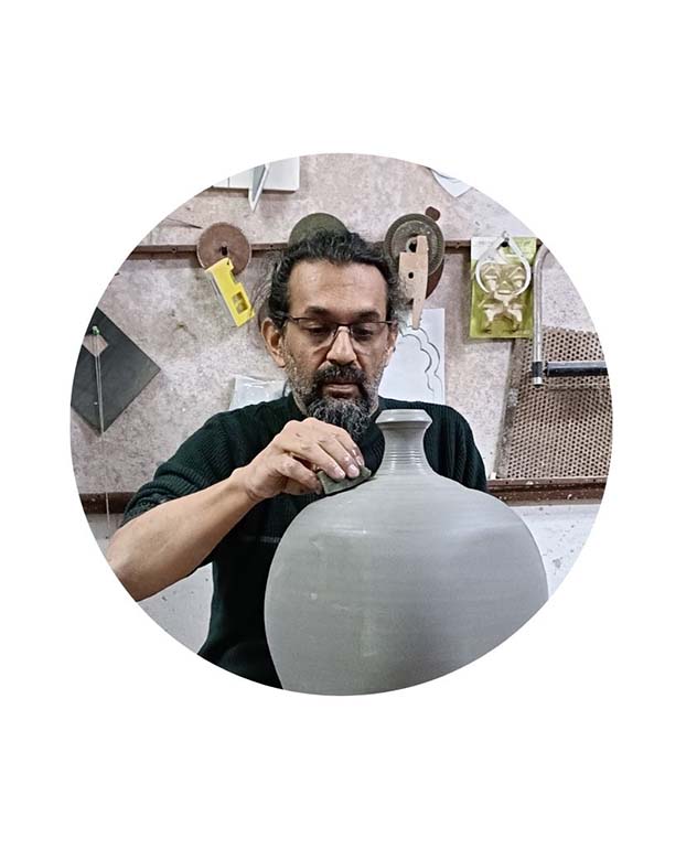 After graduating as an architect in 1989, Vineet studied ceramics at Andretta Pottery, Himachal and Golden Bridge Pottery, Pondicherry. He attended a post-experience program at UWIC, U.K., and apprenticed with British ceramists Alan Caiger-Smith and Sandy Brown. He is a recipient of the Charles Wallace Fellowship and the Fulbright Grant. Co-founder of the Contemporary Clay Foundation, he has been part of the curatorial team of the Indian Ceramics Triennale, editions 2018 and 2024. He is a current member of the International Academy of Ceramics, Geneva. His work is a part of several collections – notably KNMA, India; Icheon Museum, Korea; the FULE Museum, China; the Mark Rothko Art Center, Latvia. Vineet works from his studio in Gurgaon, India, and in Andretta, Himachal Pradesh