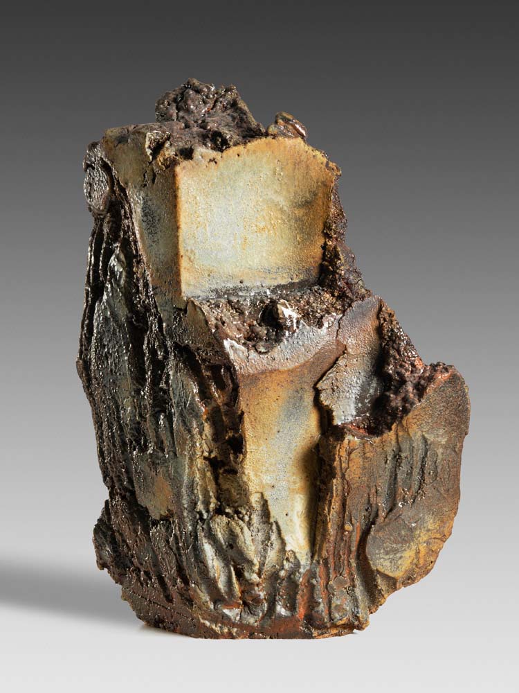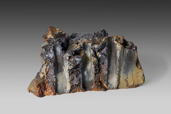 Ray Meeker is a magician. His supremely sophisticated understanding of material, of form, and of fire is based on a reverence for an uncompromising process, and a deep appreciation of ceramic traditions. The work that he has made is based in equal parts on a heroic fearlessness and the intuitive recognition of an ever-present beauty. Through his seminal work at a scale that challenges the boundaries of this material, what stands out is his embrace of a flirtation with failure, and an ability to assimilate and uncover the teaching contained in any misstep—perhaps a gift of the decade plus spent learning how to build and fire houses in mud. Equally evident, however, is his ability to imbue the smallest work with a potent monumentality, as seen in the 2021 Rough Cut series. Although what dominates the narrative is Ray’s confrontational environmental-themed work, Ray has seamlessly assimilated diverse influences in his work—the raw brutality of Peter Voulkos, the nuanced earthiness of Shoji Hamada, the human relationship with scale in a Richard Serra sculpture, the ‘commitment to truth’ of Golden Bridge Pottery production ware, the spirit and form of Indian temple architecture, the masterful building of the large-scale votive Ayanar horses of South India.