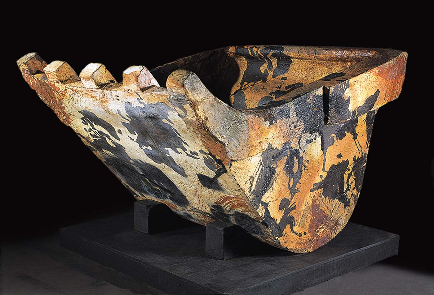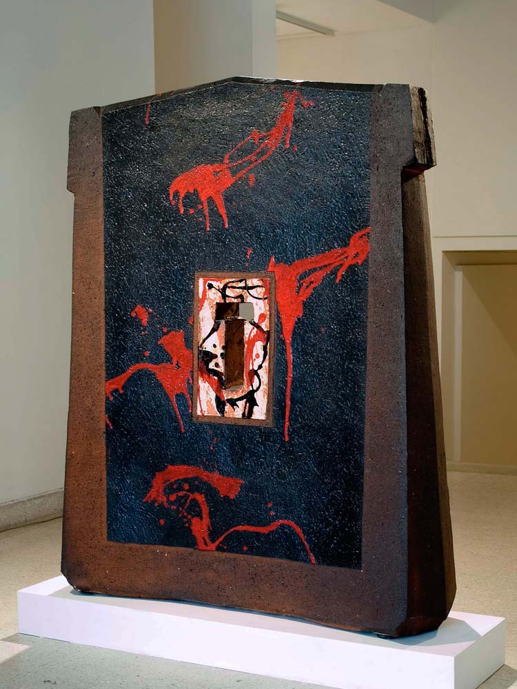 No one had ever seen anything like it. The stark departure from the ripe natural beauty adorning the functional pots of 1996 to this stark battleground of 2001 was likened by me in an earlier article to “Bob Dylan going electric for the first time”. While for Ray it seemed like the right time to pick up a relevant thread from his time as a student in 1970, this body of work was not about going back—it was more finding a portal for his future direction as an artist.
