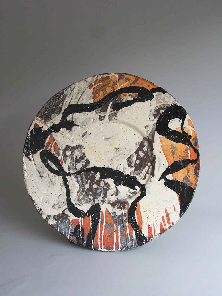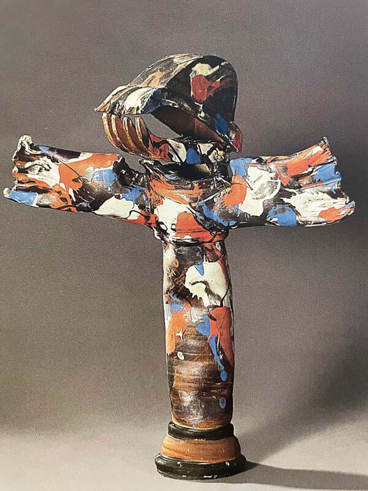 To talk about Ray’s next exhibition, Kurukshetra, in 2001, one needs to travel back in time to when the seeds for it were sown. Back at the end of the 1960s, Ray was studying ceramics at the University of Southern California, smack in the middle of a generational counterculture movement. It was not only a time of challenging prescribed norms, of protesting—against war, against mindless development—but also a time of freedom and self-expression. For those who know their popular music, 1969 was the year of the emblematic Woodstock festival. For those who know their American ceramic history, right there in California, an exceptional group of American ceramic artists, led by Peter Voulkos, had literally reinvented contemporary ceramics through their embrace of Abstract Expressionism.